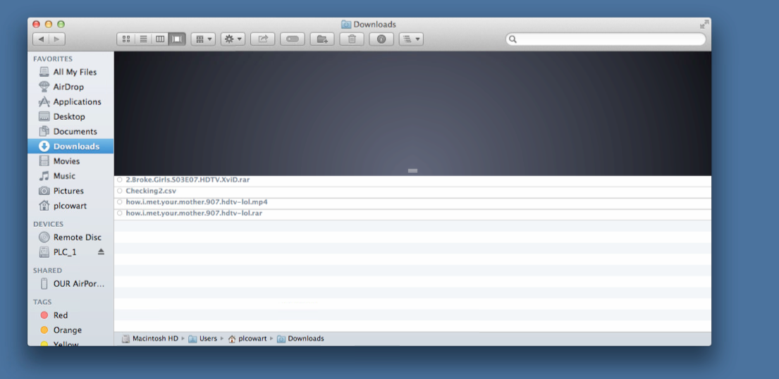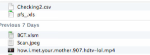 Below is a screenshot from my Dad mbPro. He just updated to Mavericks and is having issues with his downloads section in the finder. As you can see the files are there but they aren't clickable or accessible. The other shot is the all files section and as you can see the MP4 is listed and i can open it. I'm at a total loss so any suggestions would be great?