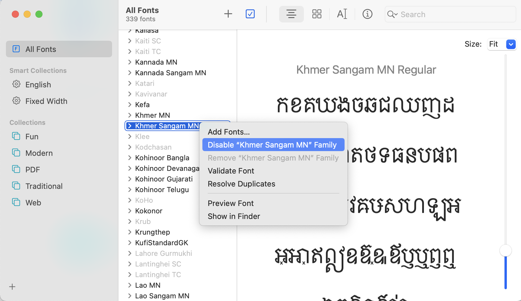 I followed some instructions for mounting the Startup System HD as writeable, threw away some fonts in the /System/Library/Fonts/Supplemental/ folder, ran the end commands which are supposed to 'rebuild the kerne cache' and 'create a new snapshot' but it seems they don't work. The last commands after mounting the drive and making changes were:
