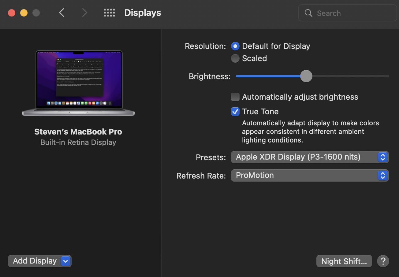So I just received my 14" M1 Max MacBook Pro and the first thing I like to do when I get a new Mac is to calibrate the display (they all skew very green to my eyes with the default factory color profile). But, I do not see an option for this as I do on my other Macs. I am not sure if this is due to the new MacBooks, or Monterey, but there is no longer a 'Color Profile' button in Display Preferences. In fact, the entire display preference pane is completely different. I can't figure out how to bring up the Display Calibrator Assistant. Am I missing something?