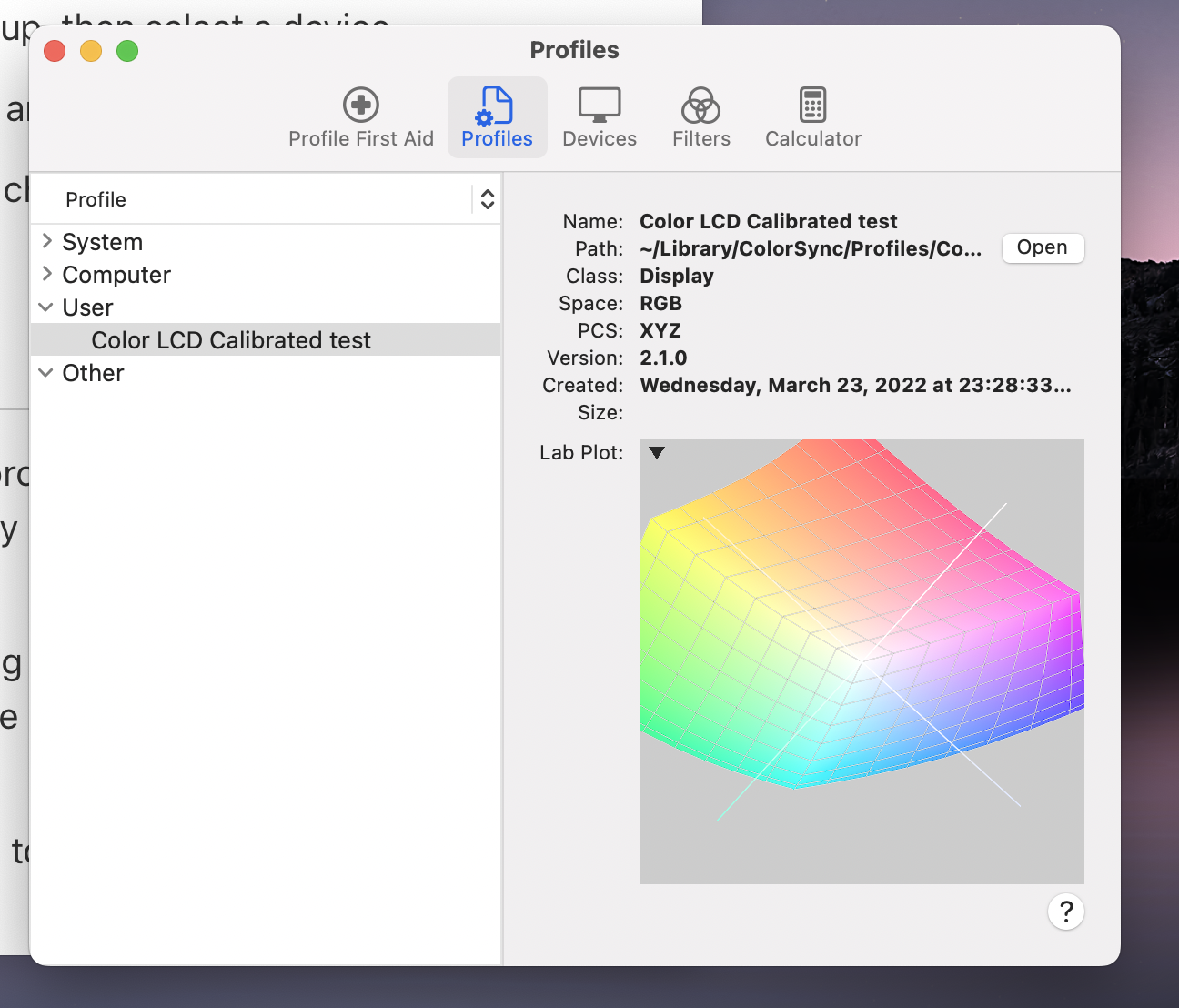 Hopefully Apple addresses this soon. So many unnecessary steps when we could have just hit two or three buttons had they not removed (or hid) the Color Calibration Assistant and access to color profiles in the Display Preferences!