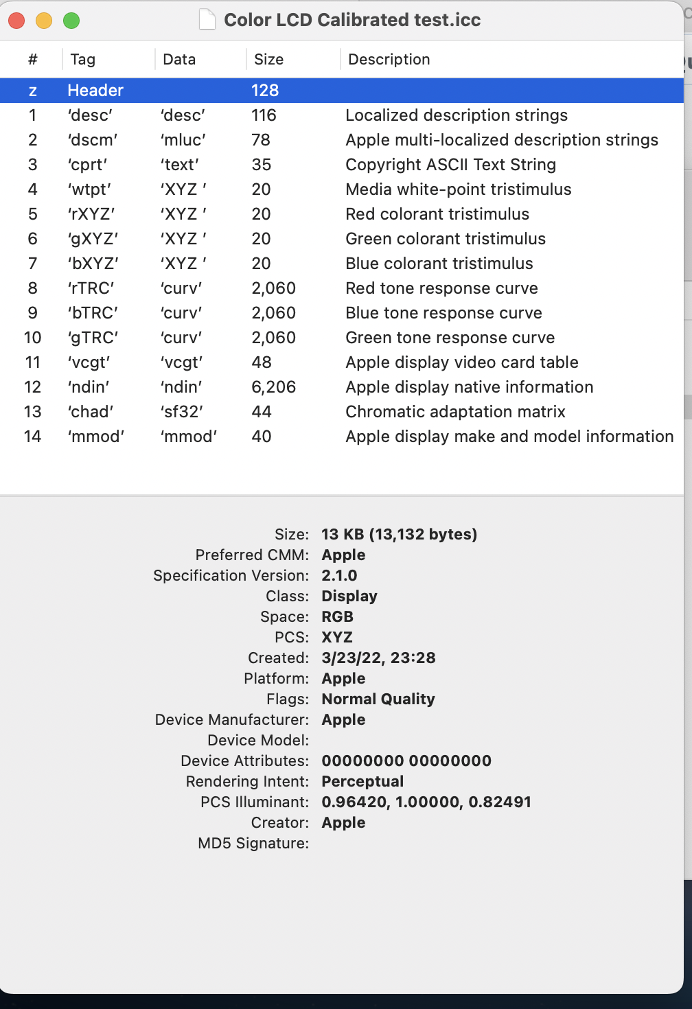 Calibrate and save the newly created color profile as you normally would using the Display Calibration Assistant.