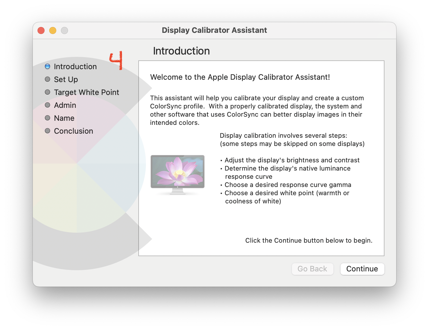 Hopefully Apple addresses this soon. So many unnecessary steps when we could have just hit two or three buttons had they not removed (or hid) the Color Calibration Assistant and access to color profiles in the Display Preferences!