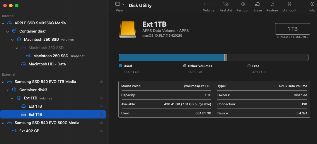 I have two EVO840 SSDs (1TB + 500GB) that were in my last Mac Mini 2012. Since the Mini died a few weeks ago, I've been using them externally with a 'new' 2014 Mini that only has a single 250GB SSD.