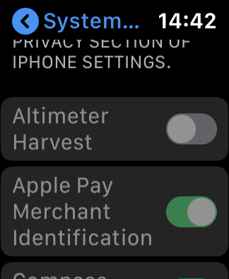 Please see attached photos. For some reason I can't enable Altimeter Harvest on my Apple Watch, and the setting is nowhere to be seen when going into Privacy > Location Services > System Services on my Iphone.