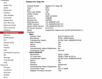Everything appears to work fine. When I select the Apple Menu and About this Mac and choose system report and choose Graphics/Displays, it shows that the Asus is: 6016 x 3384, "UI looks like: 3008 x 1692 @ 30 Hz" !!!