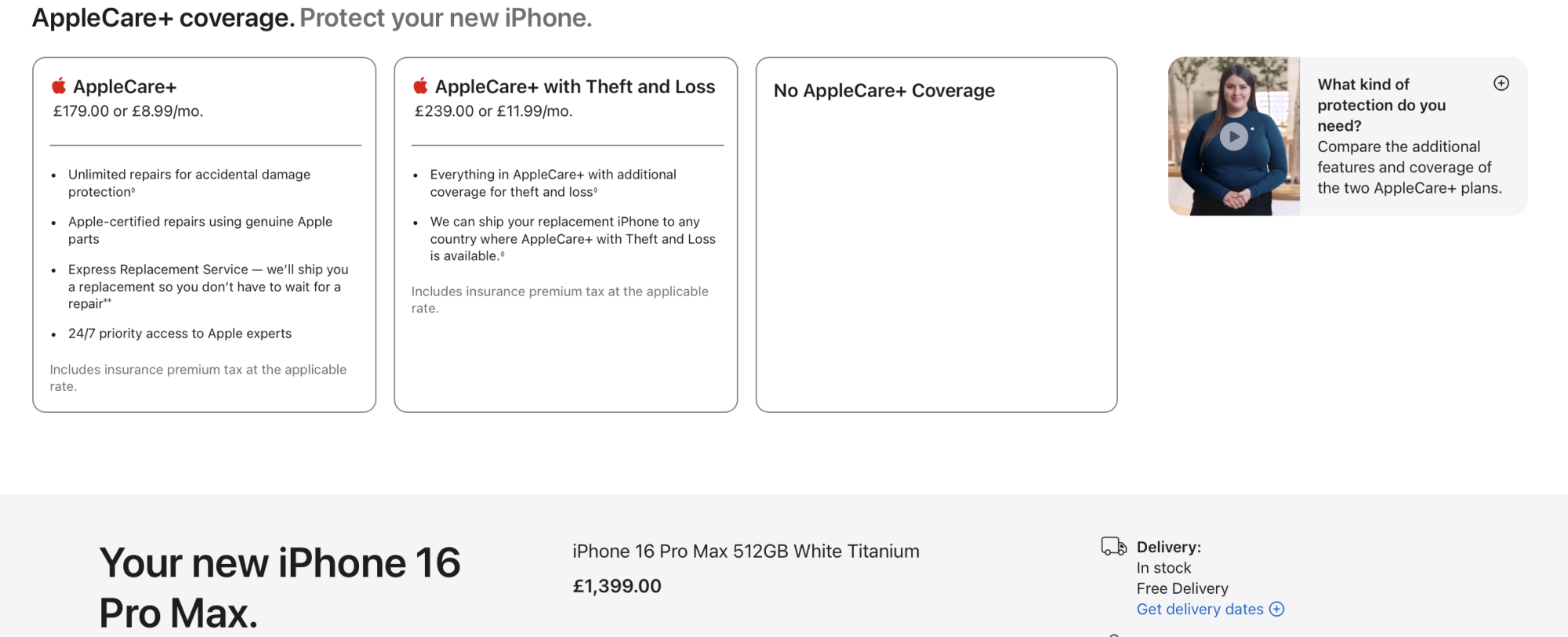 I ordered an iPhone 16 Pro today online today, and picked it up in the local store. They asked me I wanted to add Applecare, and I said no, I would add it later at home, and turn it off my old phone.