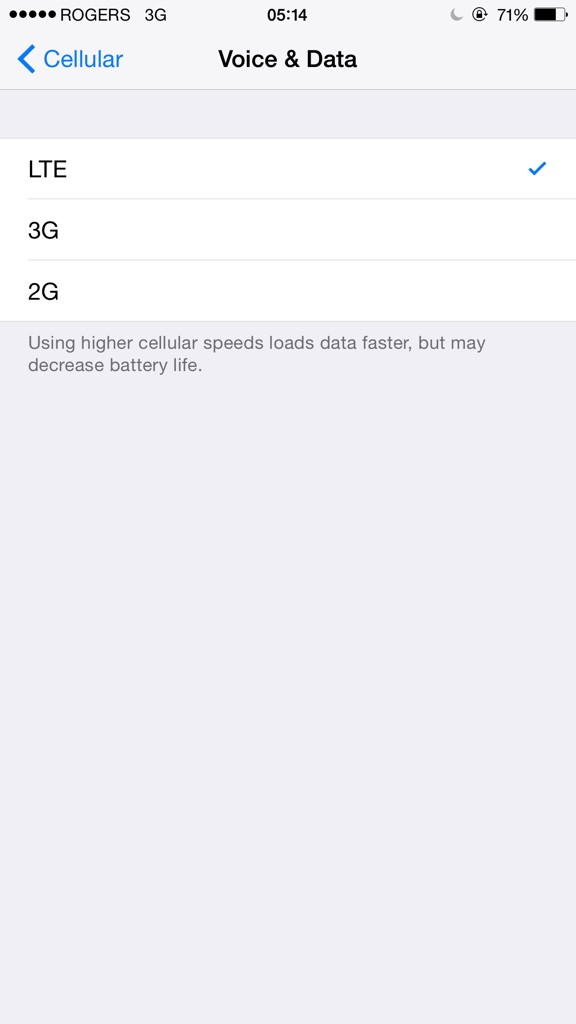 hmm, I was going to suggest something, but yours is different, I have iPhone 6, and USA T-Mobile, I have a selection for "Enable LTE" where you have a choice of 2G/3G/LTE for voice & data, I have only Off/Voice & Data/Data only, which are choices for LTE, and I was going to suggest using the Data only to see if that works, but, looks like you don't have that option.