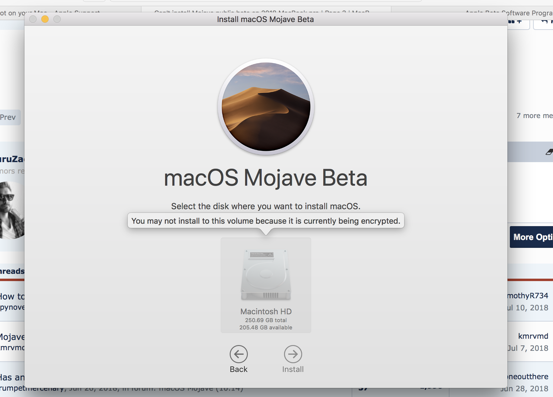 You should just wait until the encryption process is done, and then try the installer. I have FileVault enabled and I was able to update, you just cant while it's working on it.Yes FileVault is on and is currently encrypting with no option to end encryption. So basically I have to wait until it's done, then turn it off and there will be a selection to decrypt?