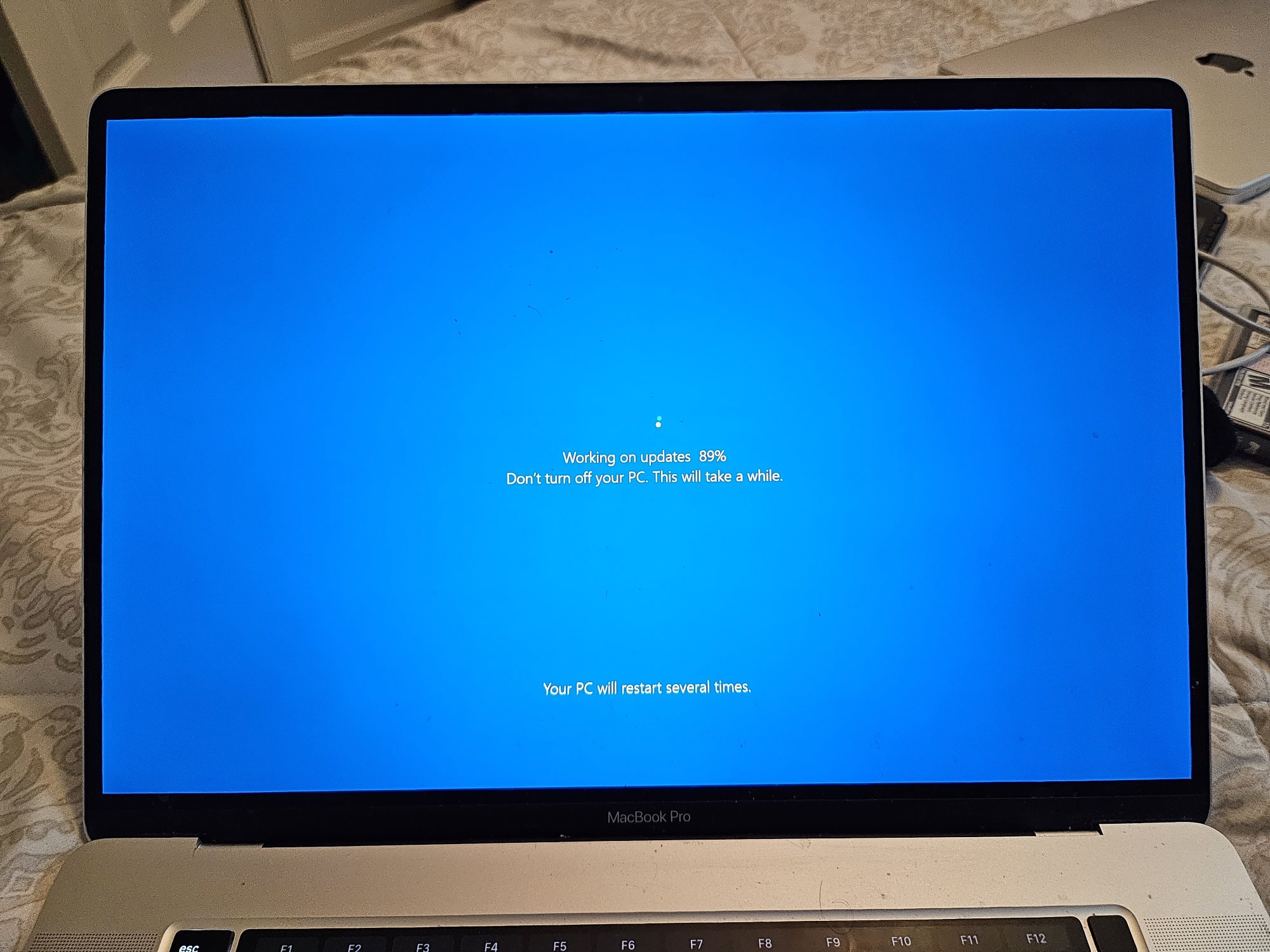 I fired up my 2019 16-in intel MacBook Pro's bootcamp this weekend after a long time. The one update that's not going through Is the Windows 10 22h2 update. It keeps giving a "We couldn't complete the updates..." error.