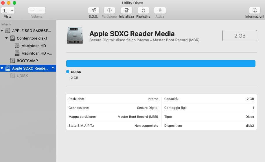 Also I want to add that in Disk Utility the SD card is seen but it's grayed out.