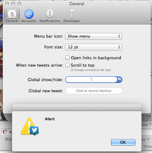 there seems to be a misunderstand that i wasn't using simply OPTION as shortcut.the alert popped up when i was holding "option" and press button "`".