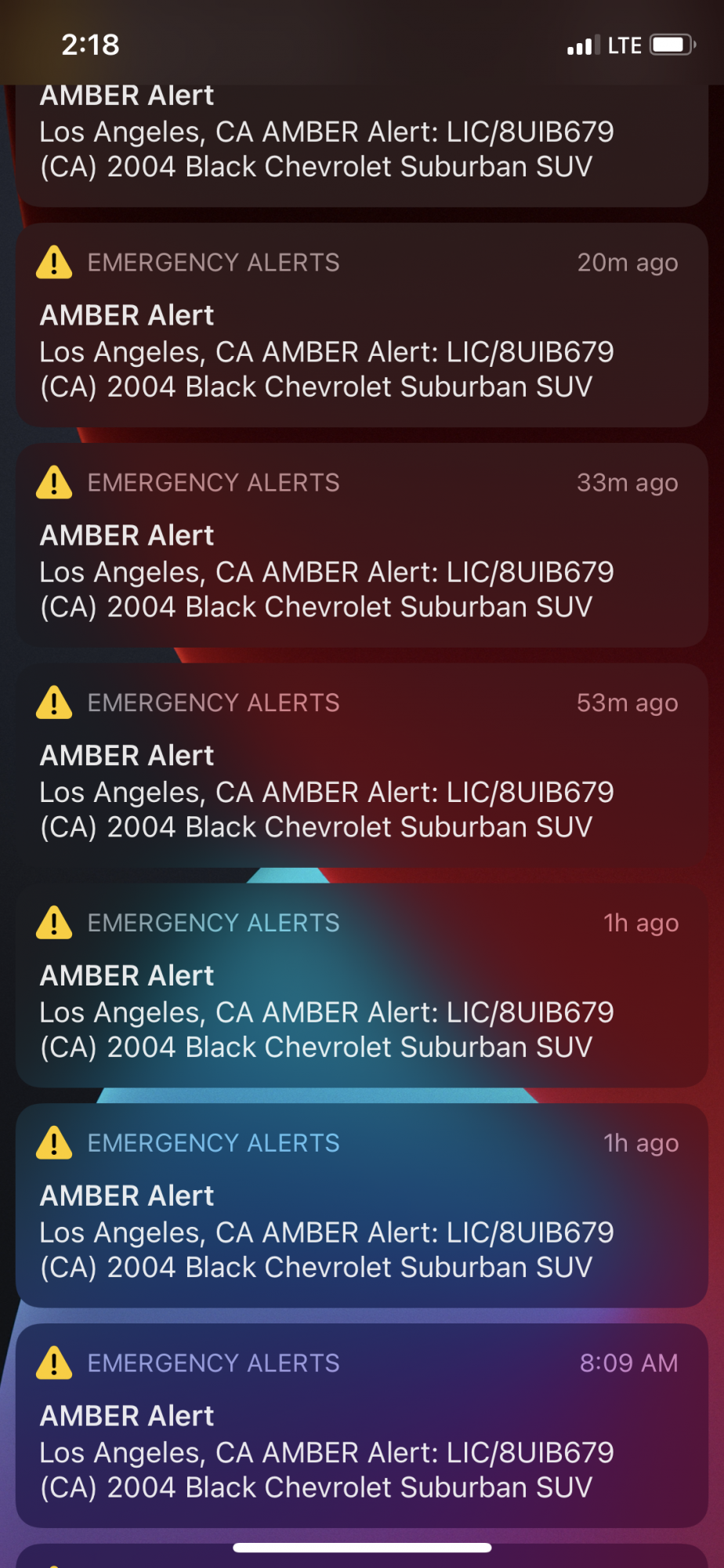 I turn off amber alerts long ago due to it going off in the middle of the night telling me I need to be looking for a tag number . . . While in bed!