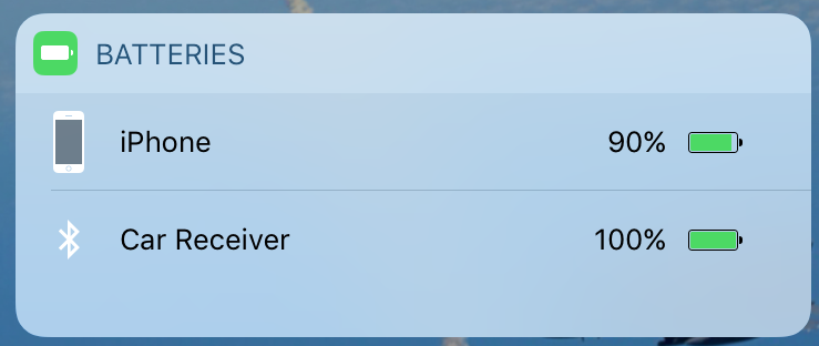 When my iPhone is connected to the car radio, my battery widget (and the status icon row along the top of the home page) show a battery level for "Car Receiver" that is always 100%.