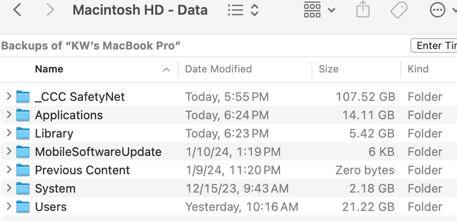 Q3) At one time, on the Time Machine backup, I saw a folder “_CCCSafetyNet “ and it occupied up 107GB of disk space and was alarmed. I don’t know how it got into the TM backup. Is it safe to delete it?