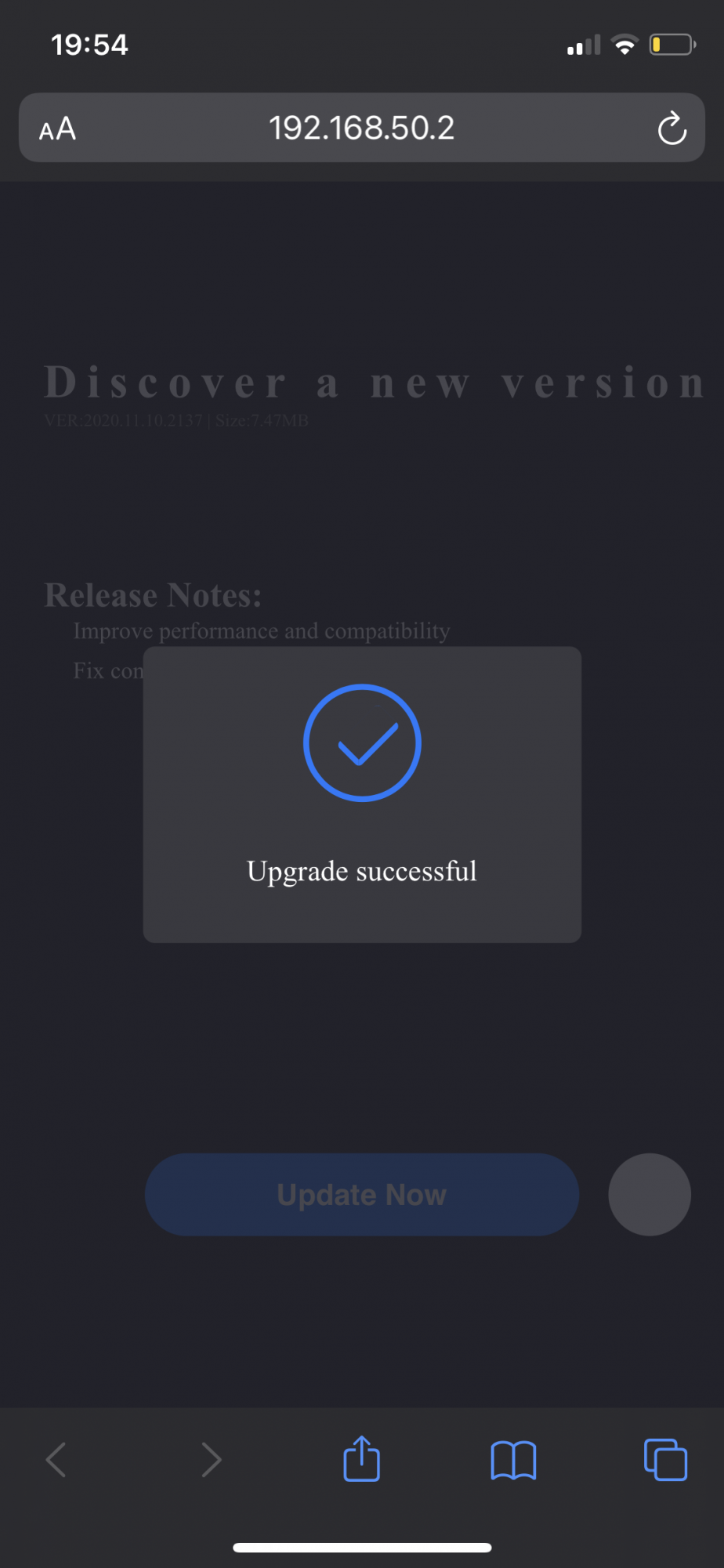 5. Now press the update firmware tab on safari on your iPhone screen and let it go through the process.