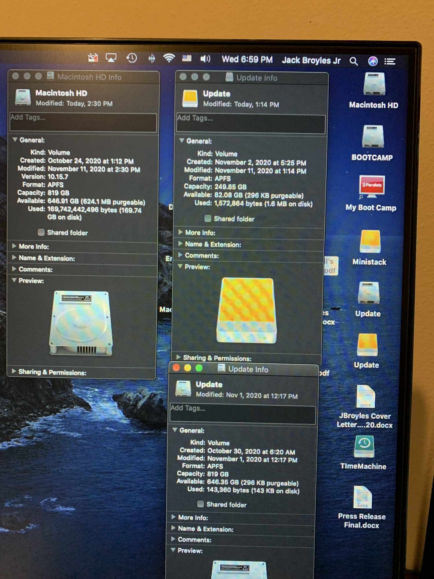 I installed the latest "supplemental" update today and once it completed, I had two new hard drive icons on my desktop. One shows as an internal HD and the other as an attached USB drive. The one showing as internal has the exact "get info" information as my internal hard drive. Same APFS format, same capacity etc. The external appears to be the exact same as a small external SSD that I have installed the beta of Big Sur on. Disk utility shows the "internal" drive as a container of disk1 and the external as a container of disk5.