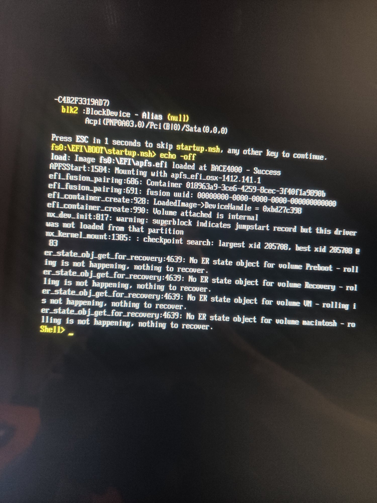 Ora quando accendo il mac mostra una schermata nera con ufi 1.1 (foto) e non mi fa entrare nel sistema, non riconosce nemmeno l'usb per reinstallare mac os.