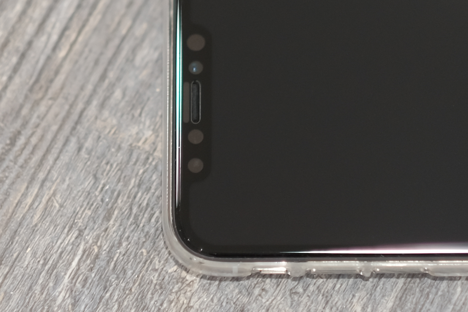 My first impressions are that the size of it is ideal for the Lucid Clear case. The thickness of the glass means that it rises a tiny bit higher than the case's lip. It feels good to the finger swiping up from the lip to the glass. There is almost no gap between the frame of the glass to the case! There is some dust buildup on the black frame around the glass, but it is not terrible. It would be worse of the black frame was rubber. There is a single cutout for the earpiece, and there are see-through windows for the other true-tone front camera elements. So far in less than hour of usage, Face-ID feels the same accuracy as without the glass. Time will tell, but so far so good on the Face-ID front.