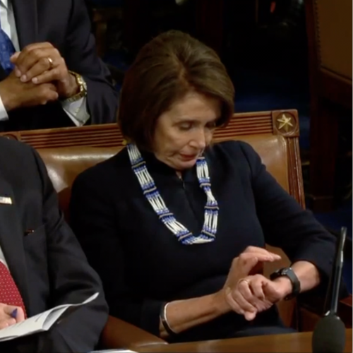 Only see TV sightings - mostly TV shows and interviews, someone on a news network like CNN, (Local news here, the anchor was wearing one - but I think it was off..which I guess makes sense)