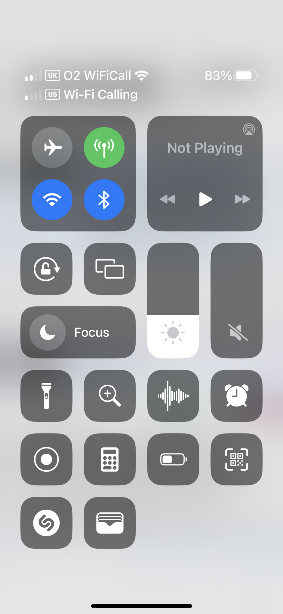 I recently noticed in the top right-hand corner swipe down menu (I forget the name of that menu…) the cellular icon is “greyed out” compared to the white on the other logos.
