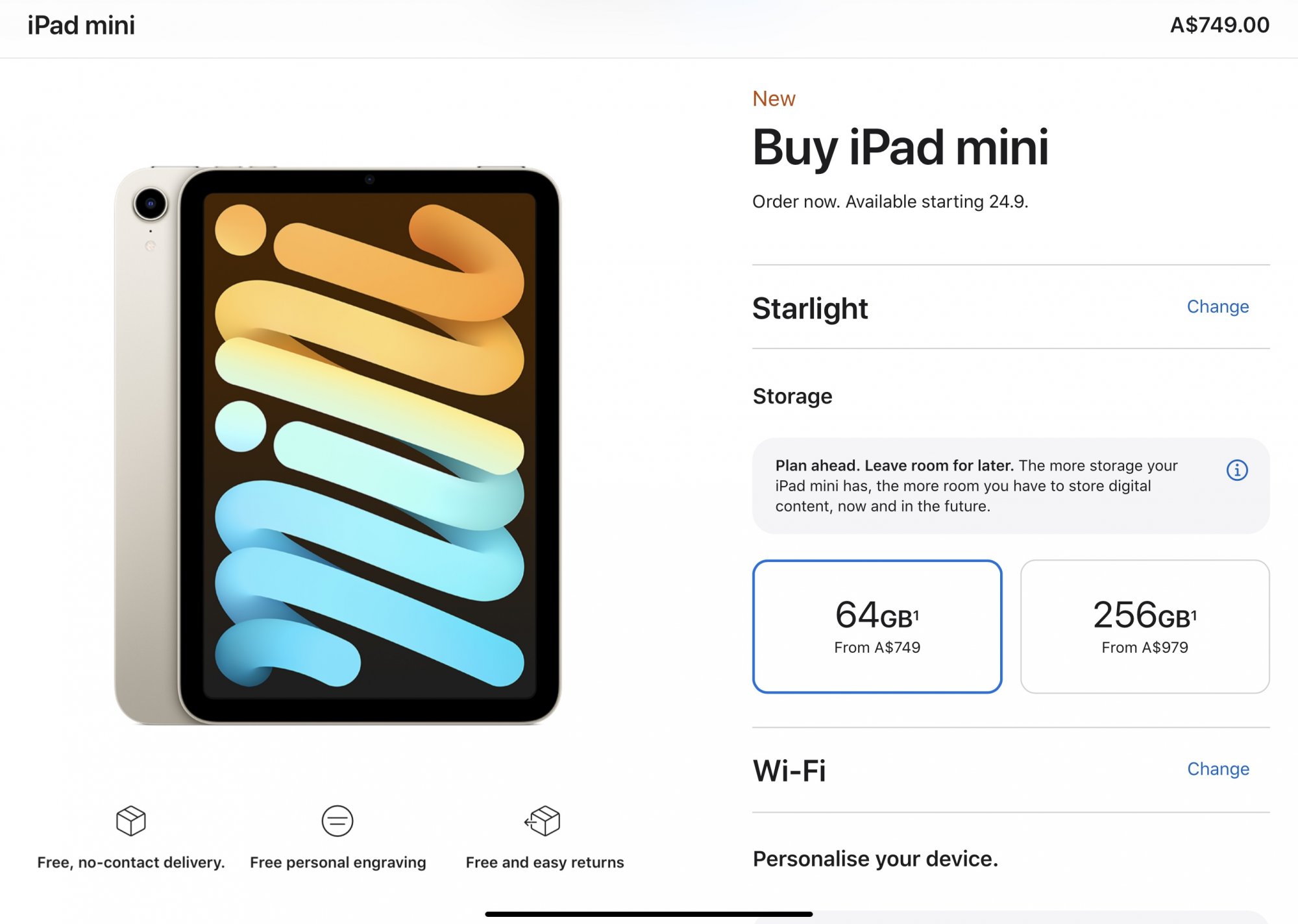 Starting at $499 for the 64GB Wi-Fi-only model, the redesigned sixth-generation iPad mini is available to pre-order now on Apple's online store. Cellular models are available for $150 more over the base price of each configuration. iPad mini shipping begins Friday, September 24.