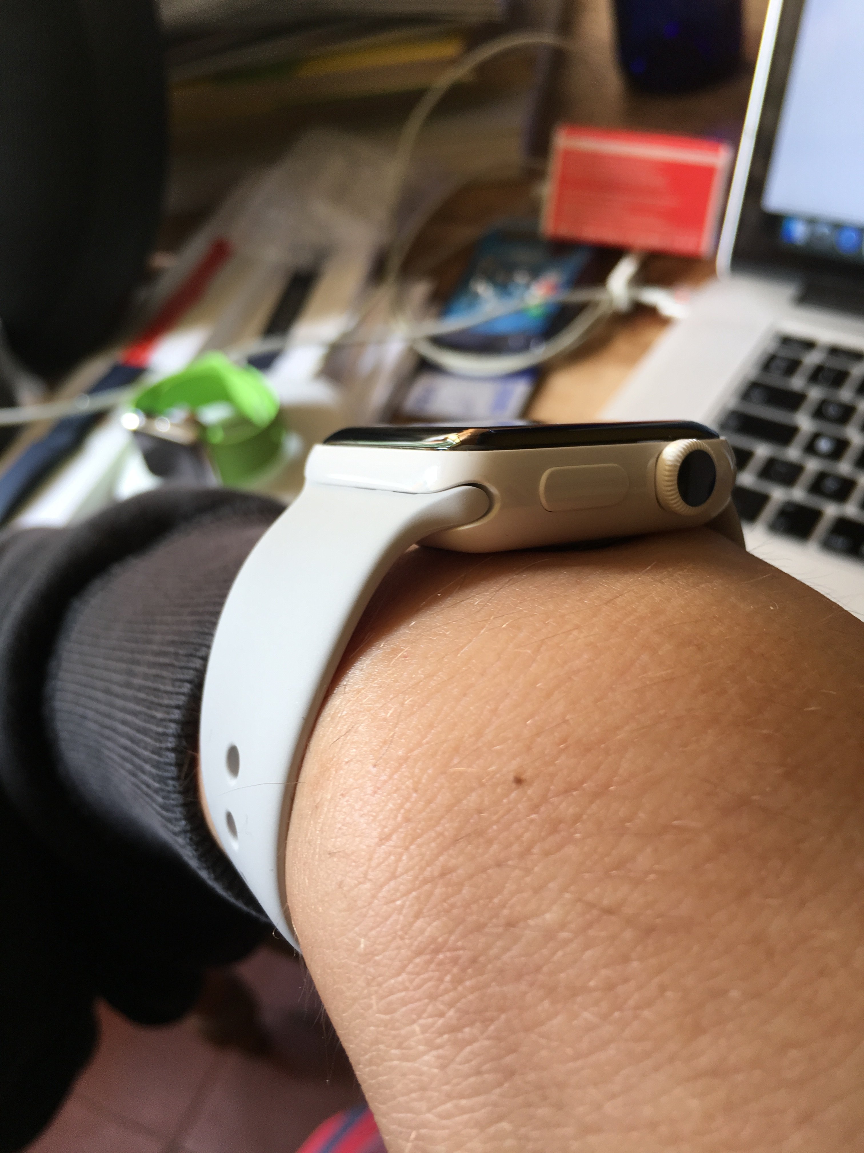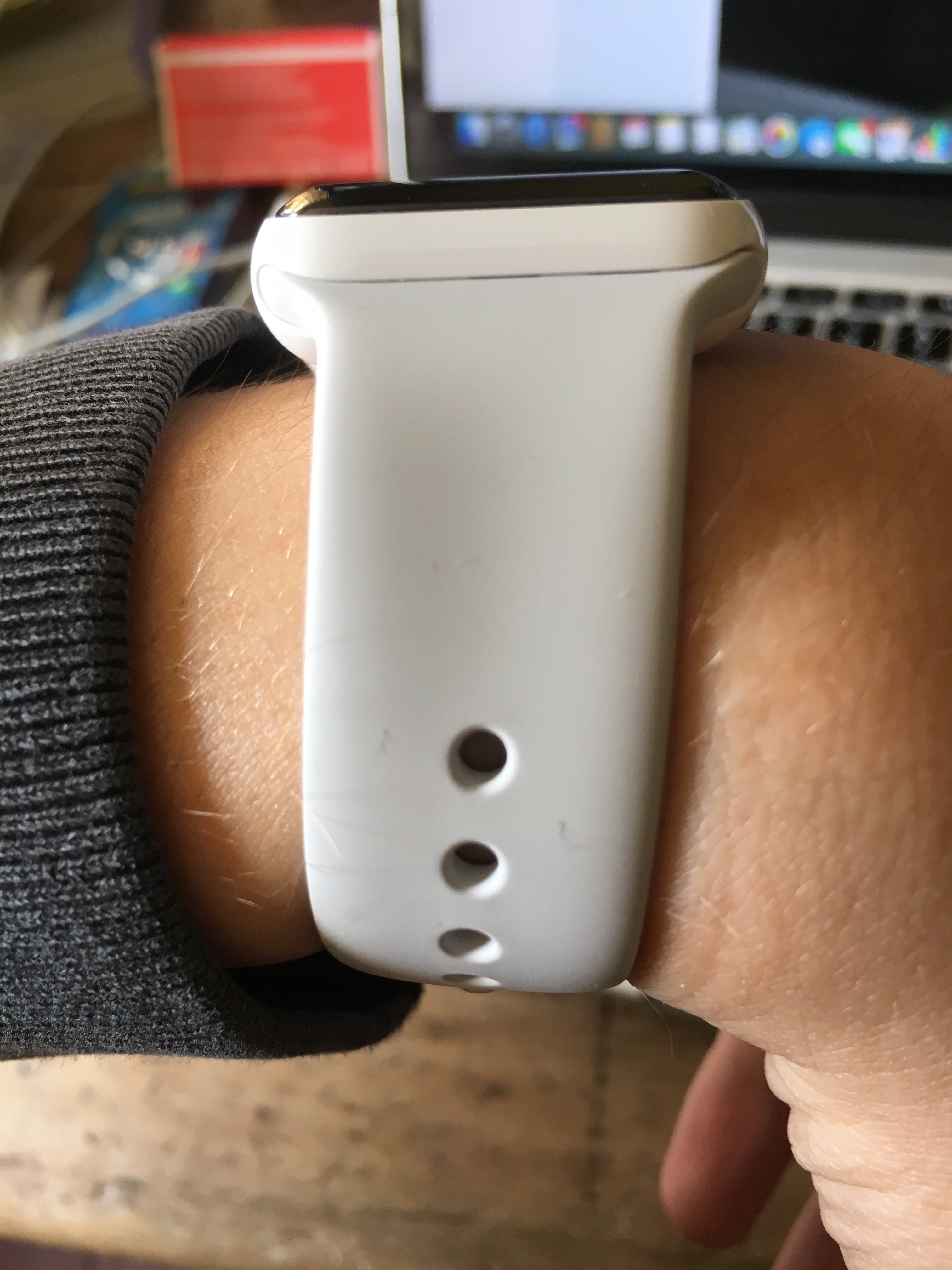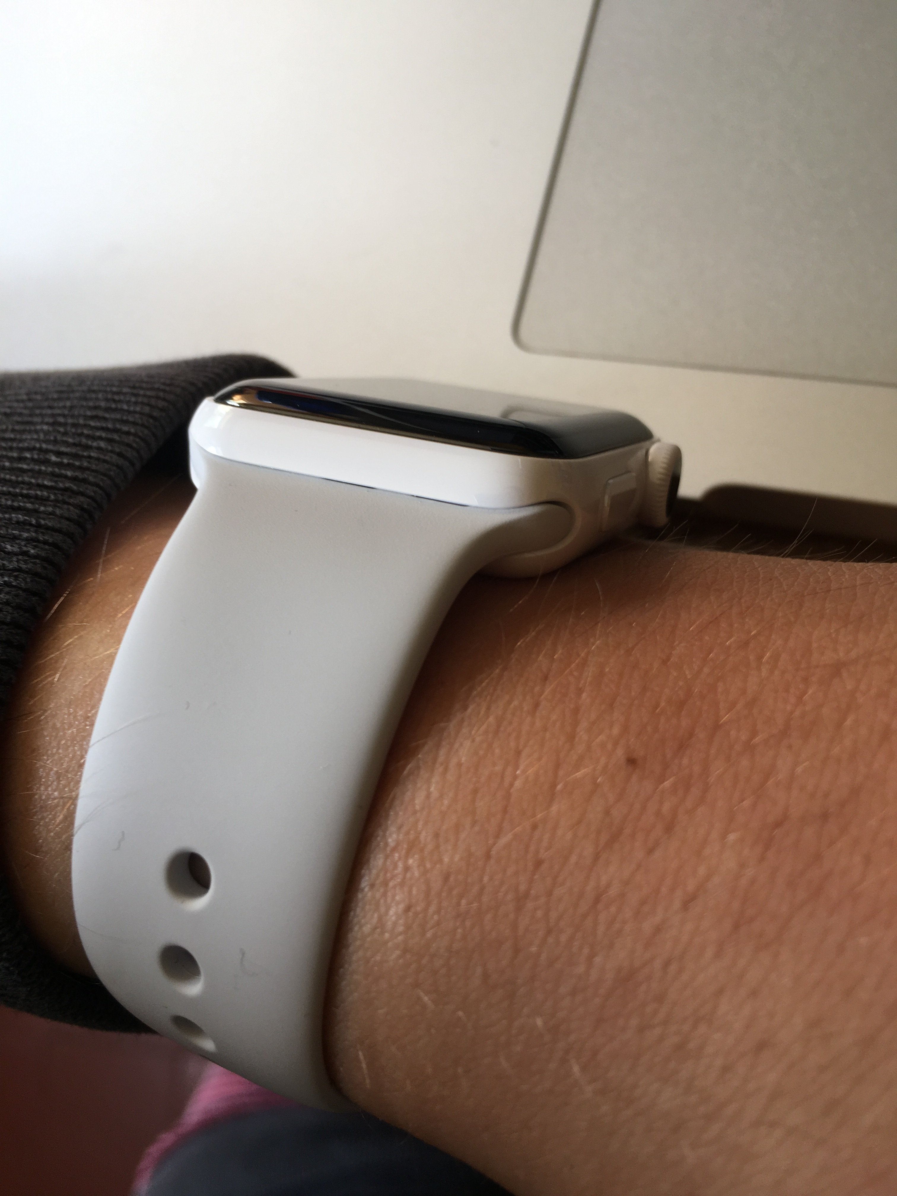 First of all, the band is extremely loose when connected to the watch. It feels like it can slide out at any second. I tried it with my old sport bands, same thing. Put the new band in my old watch no problem at all. So in other words this new watch is manufactured poorly.