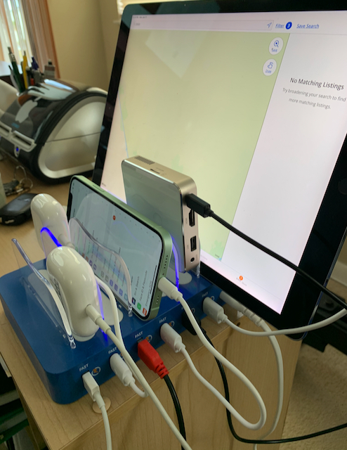 The dock is able to charge up to five devices at one time through two 20W USB-C ports, two 12W USB-A ports, and a Qi-based wireless charger that can charge at up to 10W. With the exception of the Qi-based wireless charging spot, charging is done over a wired connection and Lightning cables or other cables will need to be supplied.