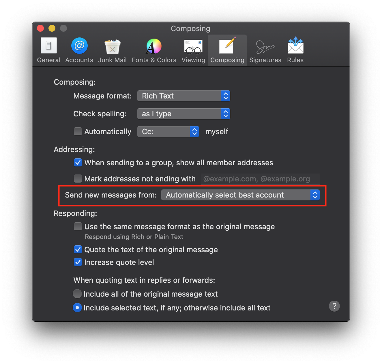 When I'm writing any note for email, it comes up as the default return address (garbage@gmail.com) where "garbage" is not the correct name, but I don't want to spread the correct name of this account here. I would like to use either another gmail or outlook address as my default outbound return address.