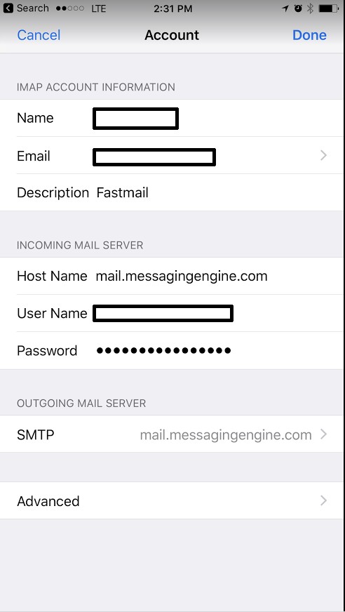How do I change the password for email accounts in my Iphone? The only option I can find is to delete the account and then add it back. When I open settings-mail-accounts-select specific account. My only options to select are Name, Email, or Description.