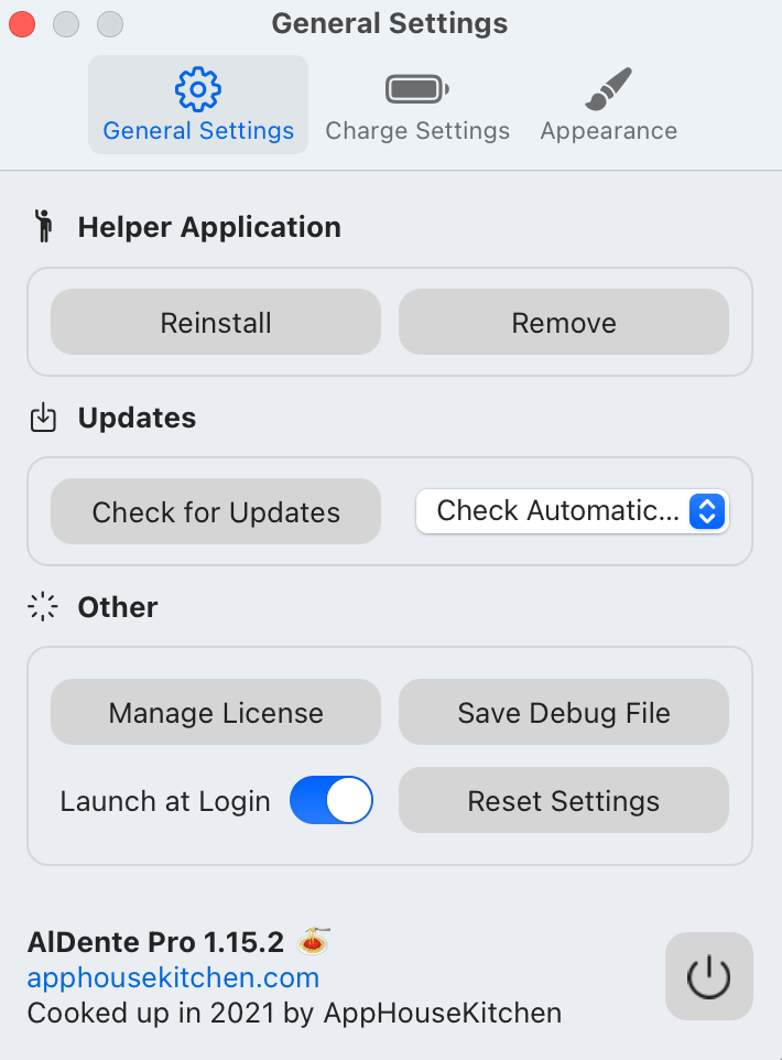 "Therefore, we implemented the feature “Stop charging when powered off”. When this feature is activated, AlDente will stop charging right before your MacBook is powered off. As a result, your MacBook will stay at the current battery percentage it had just before it got shut down. Therefore, the battery will not charge to 100%".
