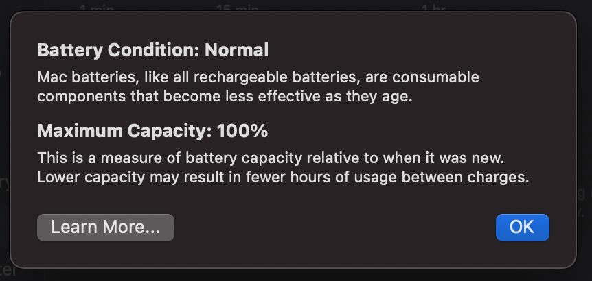 The MBA was new on Nov 21st 2020, and I used Apple's Optimised Charging until I installed AlDente on Feb 18th.
