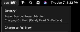 I do use this system on battery on a daily basis for maybe 1/2 hour to about two hours max. It's likely sipping battery because this was on an Apple M1 system and isn't consuming enough to maintain good battery health.
