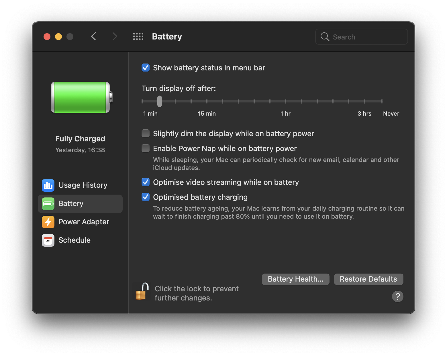 This is amazing and wanted to share this. Haven't seen this with any other Mac I've owned. Big Sur effectively tells me I need to use more of my battery