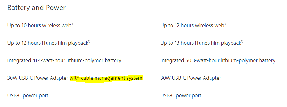 https://www.laptopmag.com/reviews/laptops/macbook I couldn't find an apple.com spec on it. I updated the CPU info, thanks for the link. I'll add keyboard info, but I want to keep the TB models out of it. It's very clear why those are different and in a different price range, but this chart is meant to compare otherwise very similar models.