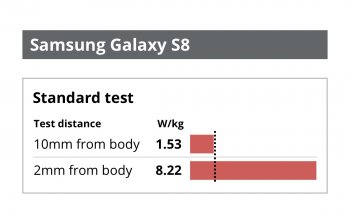 While tests can be conducted from up to 25mm away, The Chicago Tribune used the distance that manufacturers choose for their own tests. In Apple's case, that's 5mm. A second test was also done at 2mm to simulate the way most people carry their phones.