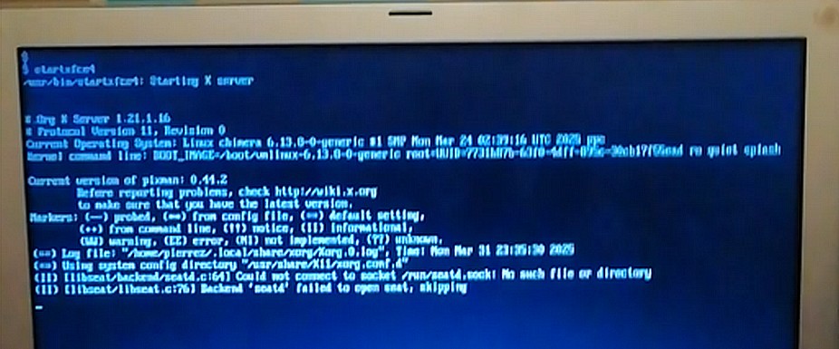 _seatd" (figured out that's what was needed to avoid error msg and indeed got none), and... yep, worked out as expected, mouse/kbd now working again in XFCE4. Some mess up with monitors, but that's It for today (tonight, rather).