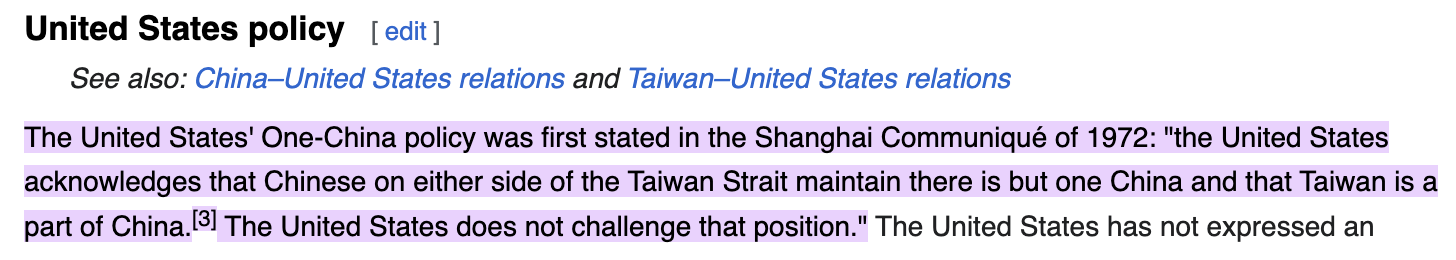 One China. However, this is both incorrect and a false interpretation of U.S. policy.