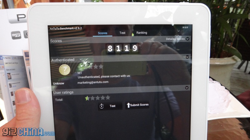 The Pipo M1 dual-core Android JB tablet scored 8119 on the Antutu benchmark.