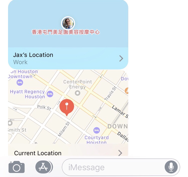 Attached is an example of what this looks like. This is a message thumbnail from my iMessage transcript when my friend shared his location yesterday. He was not at a Chinese spa.