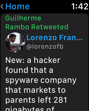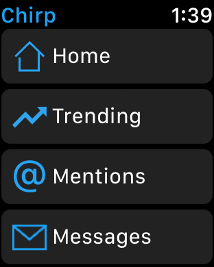 I'm just here to show you an app I'm working on and have released recently, Chirp for Twitter. With Twitter removing their Apple Watch app some time ago, and no replacement available, I spent some time and built one myself.