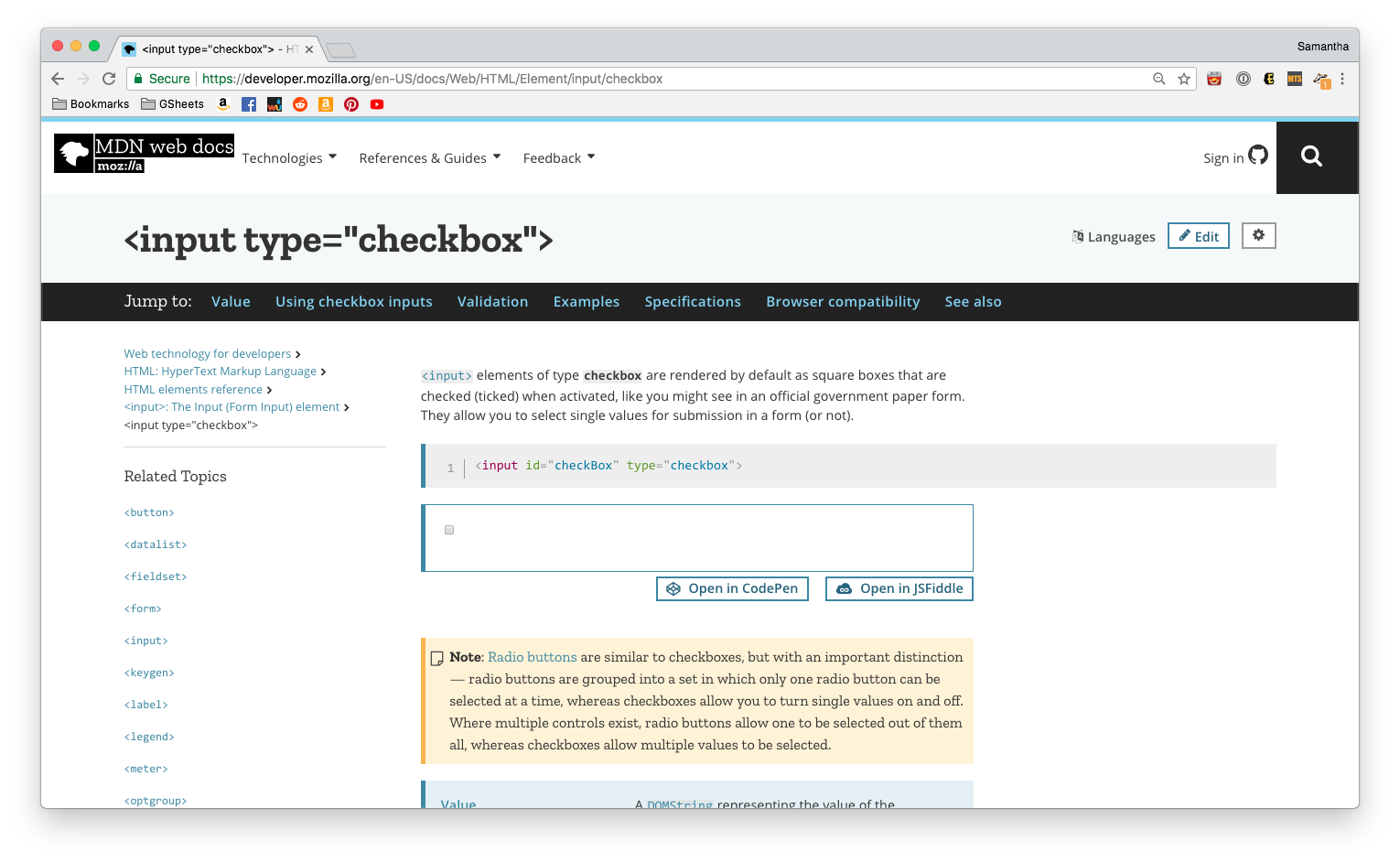 It seems that changing the zoom on a page with checkboxes using ⌘+- and ⌘++ make the checkboxes visible. They only do not appear when the page is at 100% zoom. The top image is at 100%, and the bottom (with the checkbox visible) is at 90%.