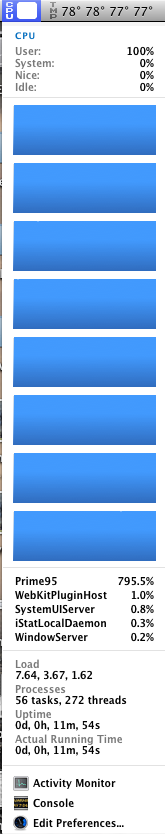 After running prime95 the temps only reach the high 78-79C mark, this is after maxing all four (+four virtual) cores for 11 mins at 4.01GHz: