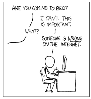 Funnily enough, this subject came up during my weekly poker game with Socrates, Jesus, Abraham Lincoln and Batman, and they all agreed that the question was "how do you know that a falsehood is obvious?" and that your example made the unlikely assumption that someone posted a blatantly self-contradictory resume. Socrates said that the best response is always a reasoned counter-argument supported by references - which also forces you to check your own facts just in case you have it wrong. Batman reckoned that it was OK to use ad hom attacks if you have cast-iron evidence that their credentials were false (but never kill them unless they accidentally fall off a roof before you can save them), but Jesus didn't think that was ever acceptable, even if they ad hom'd unto you (then he folded on three-of-a-kind). Abe pointed out that it also depends what they were saying - if it's a harmless matter of opinion then don't sweat it, but if they were suggesting something potentially harmful - like encouraging people not to wear a kevlar vest at the theatre - he was sure that the MacRumor's mods would look into it if you reported the post.I'm not talking about changing careers. I'm talking about obvious falsehoods.