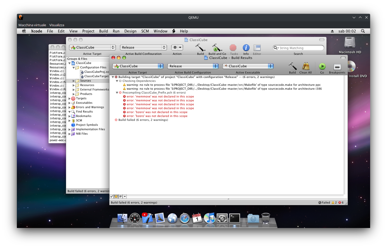 Warning: Building for intel with Mac OS X < 10.4 is invalid;