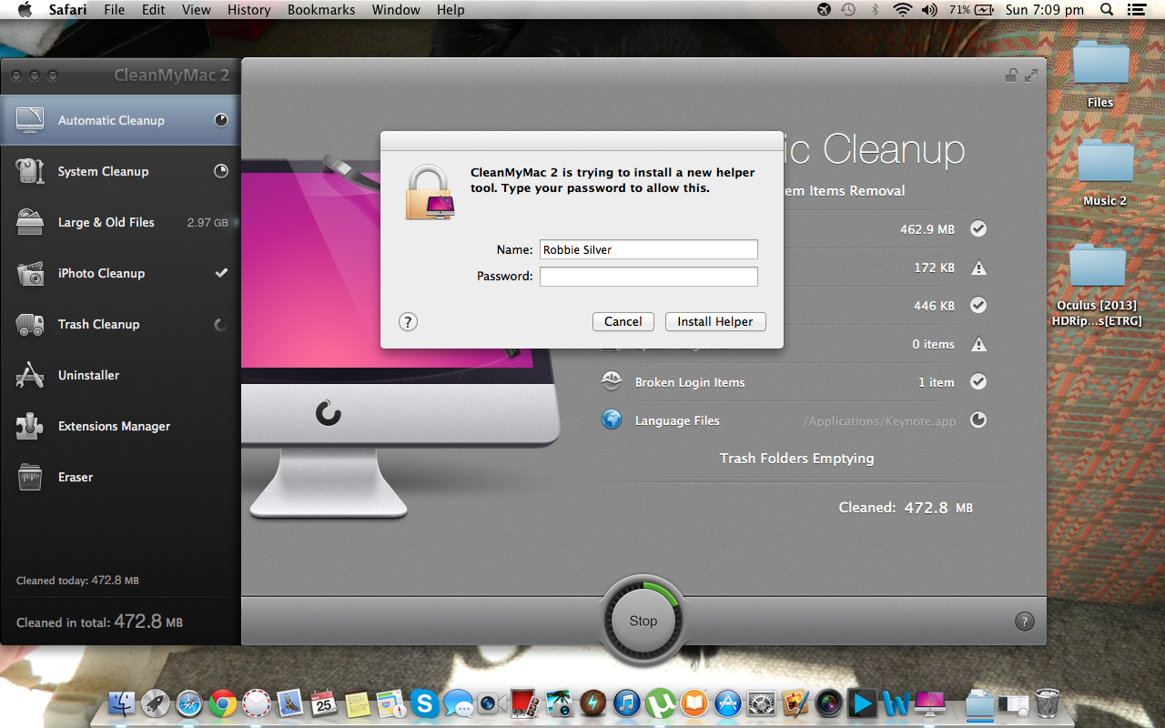 iv just downloaded the new program cuz of an update and i keep getting this issue even though iv entered my password , does anyone else use clean my mac 2 or can any one suggest a cleaner program ? , thanks