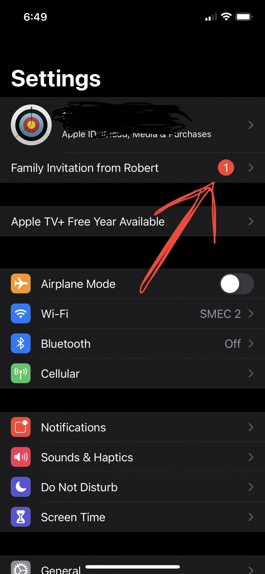 Z zowenso macrumors 6502 Original poster Oct 2, 2011 327 25 MA Mar 1, 2021 #1 Hello. My uncle sent me a family invitation which I didn’t want and has expired but I can’t get the red 1 to go away. Here is my settings screen and what I see when I go into it. Any idea how to clear this? Thanks. Attachments 2AB75B12-E034-4A3F-840B-ED9C13C3E617.jpeg 136.1 KB · Views: 113 7B1AF3E6-69EC-47F8-8962-96707E4BD59A.png 649.4 KB · Views: 47