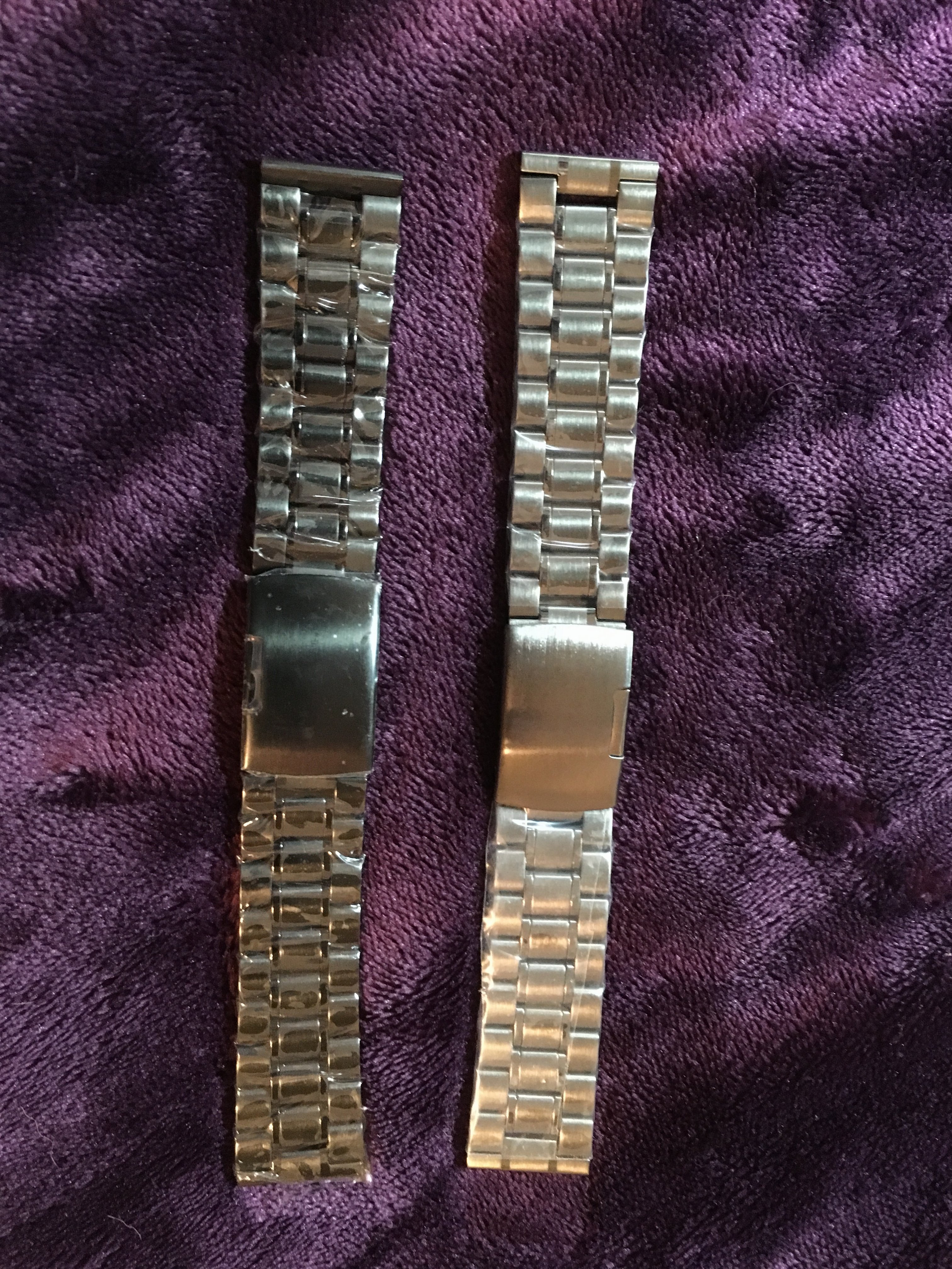(Oh, the lower-left picture in the collage-of-nine shows one of the new Click adapters above one of the previous ones I was using - "Grey Apple Watch Band Adapter 38mm 42mm Watchband Iwatch Connection" bought Jul 15th on eBay from freedomoclock09. They were for 24mm watch bands, so I made tiny rubber washers to fit my 22mm band, and the springbars have residue from tape I wrapped on them to make them a little thicker.)
