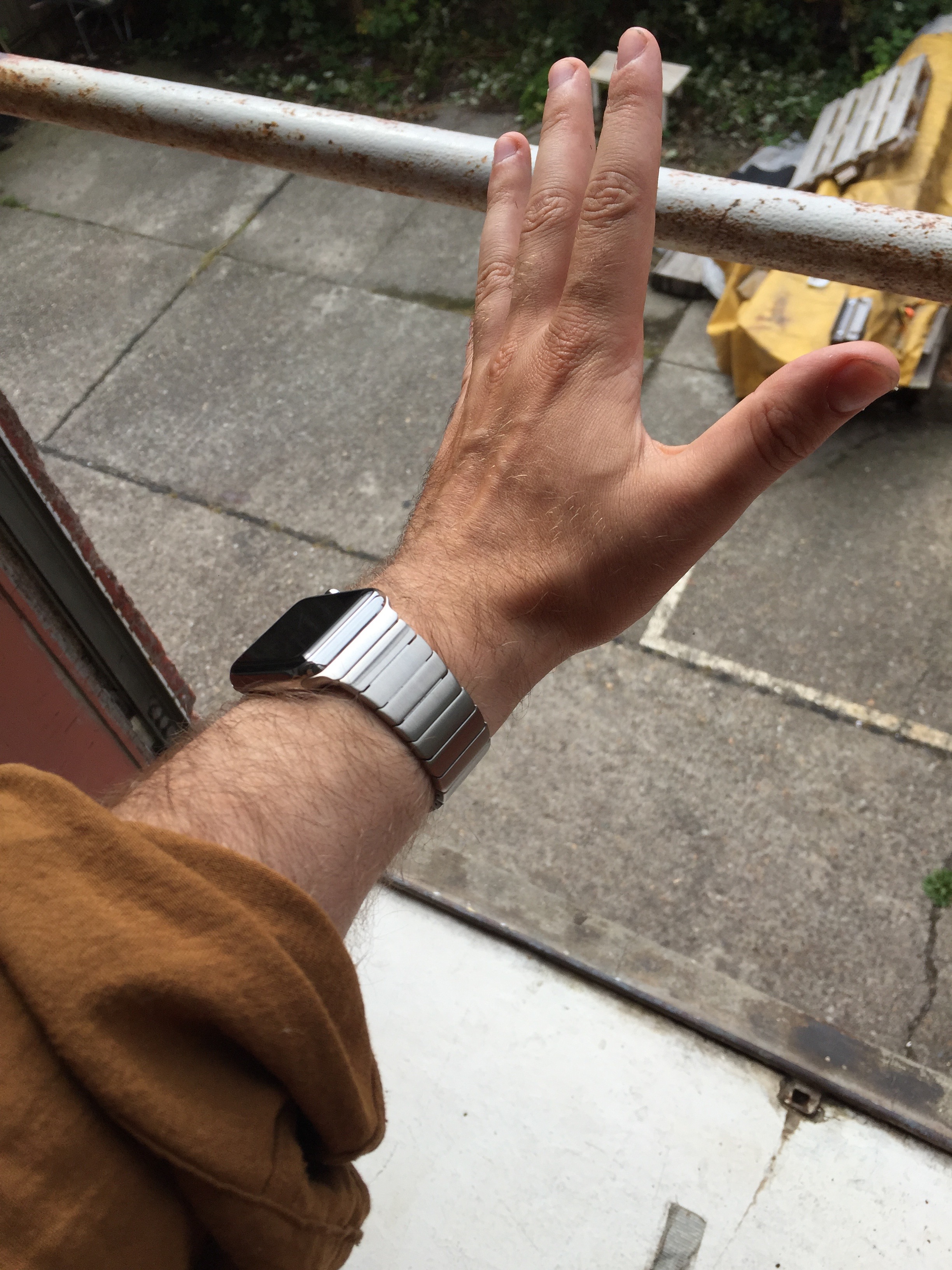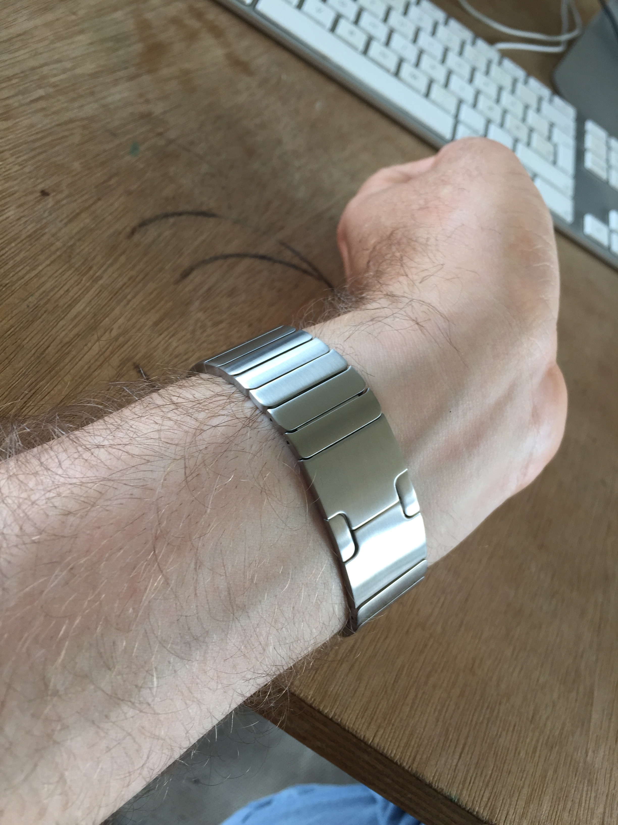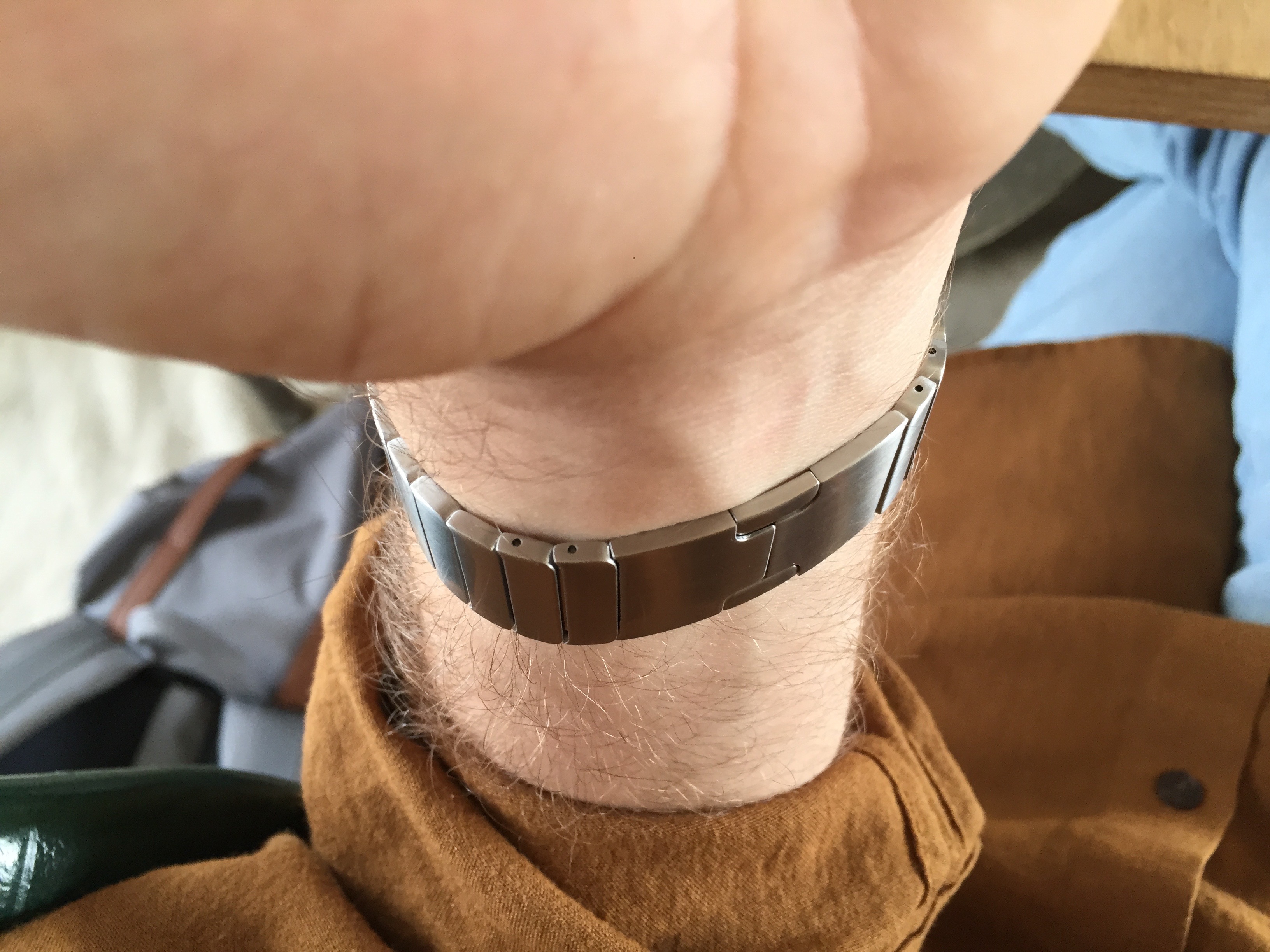 Man that's really nice, great pics, thanks. I have high hopes for the black one I've ordered. Thanks again. Moko makes really nice replica bands, I have their black sport band, very nice.I also got the Moko version and the gaps are similar to Apple's official link bracelet. I've had no issues after wearing it all throughout the week. A few pics are below...