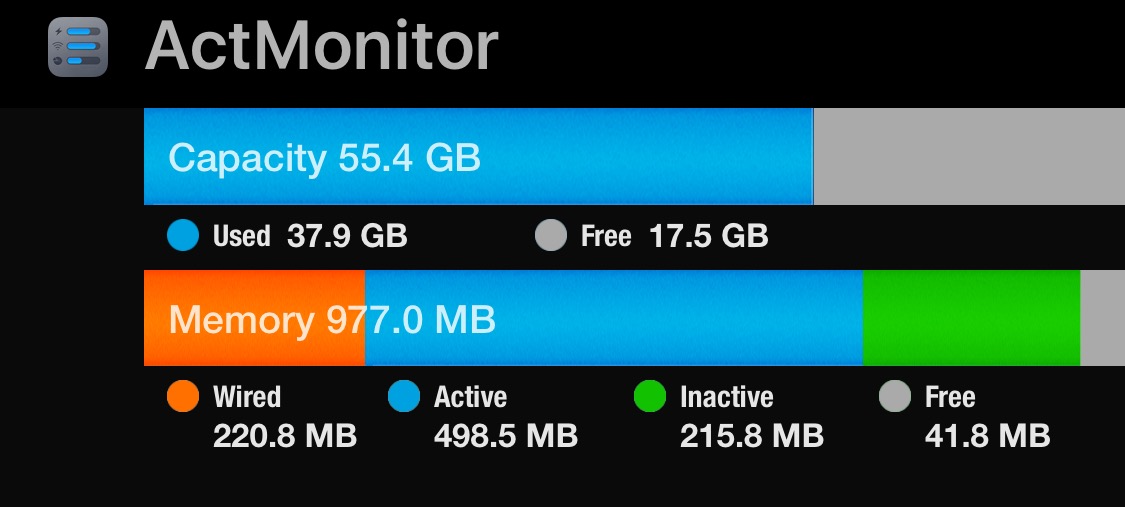 Here's how much free RAM is available on my iPhone with 21 apps "suspended" in the background in the App Switcher (41.8MB)