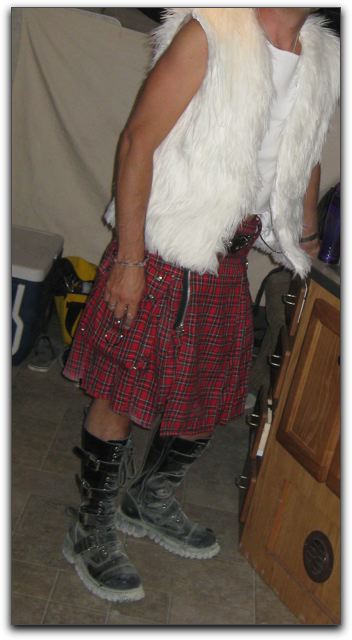 Kilts - particularly worn casually with boots and a loose shirt/sweatshirt.![]()